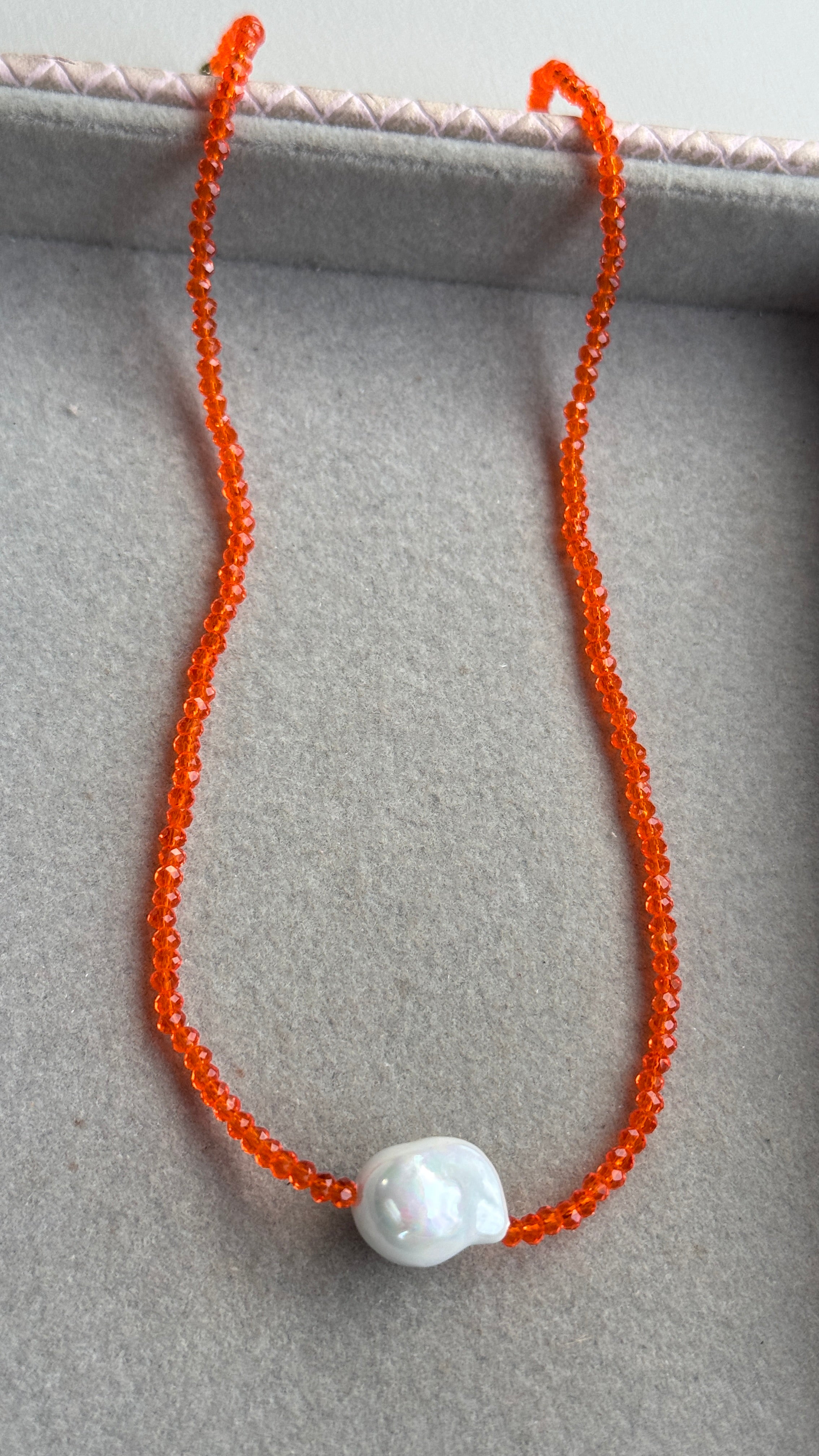 Colar cristal pérola Shell - Coral translúcido – Zayah Acessórios Finos