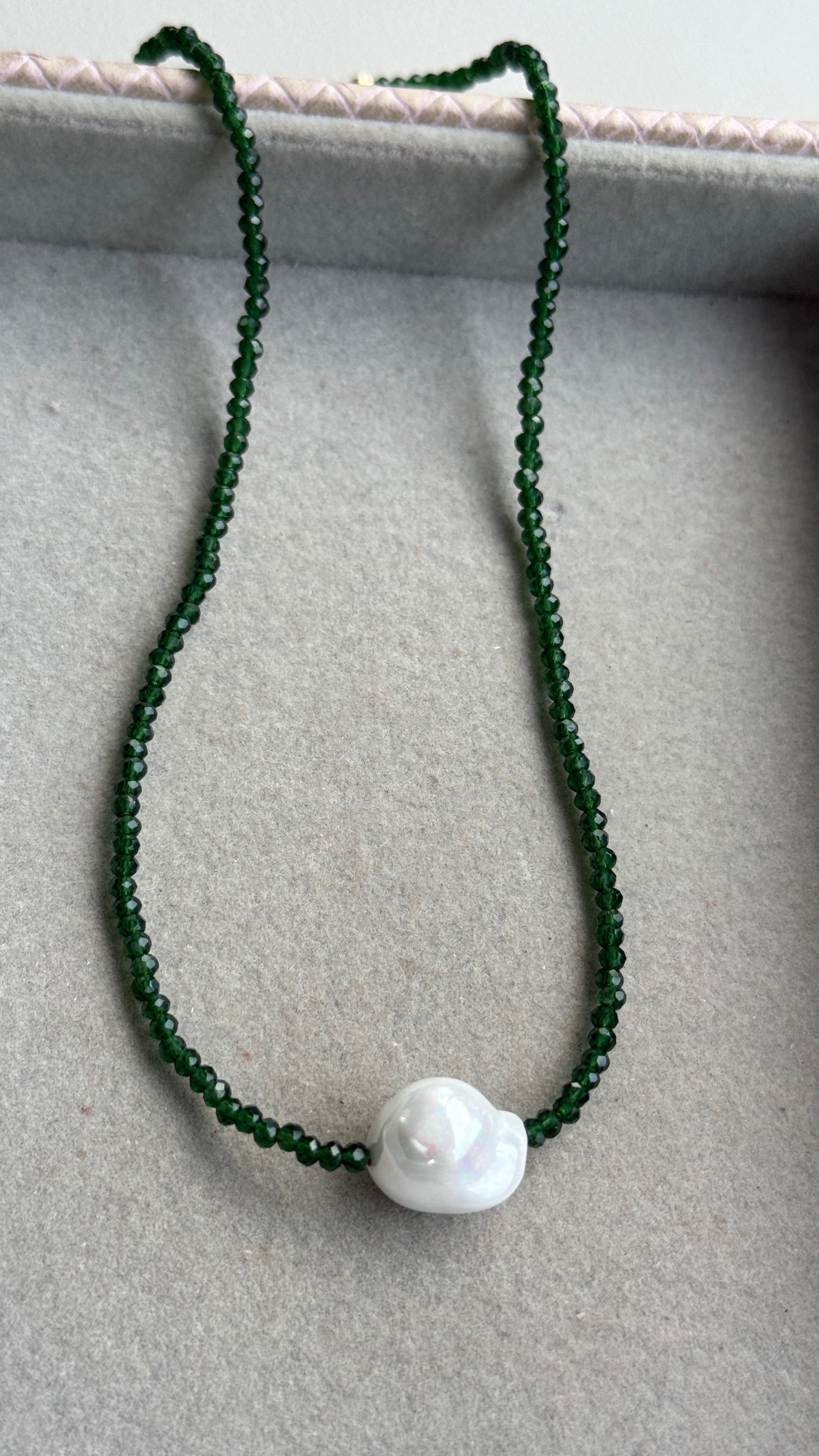 Colar cristal pérola Shell - Esmeralda escuro – Zayah Acessórios Finos