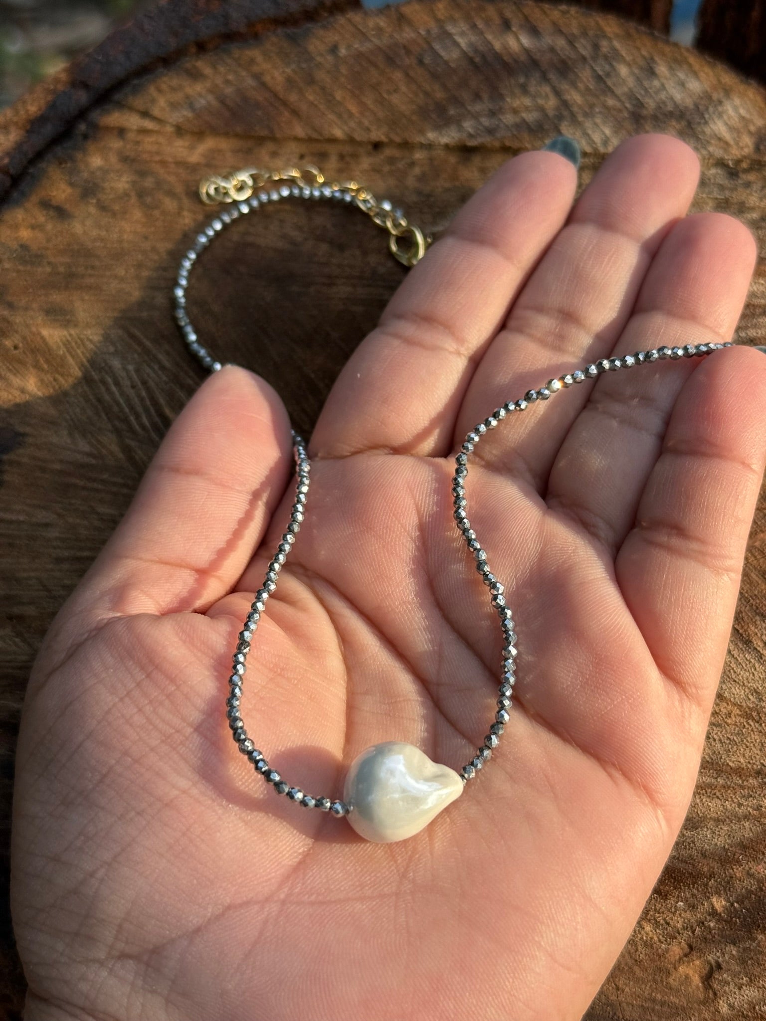 Colar micro cristais pérola Shell - Prata – Zayah Acessórios Finos