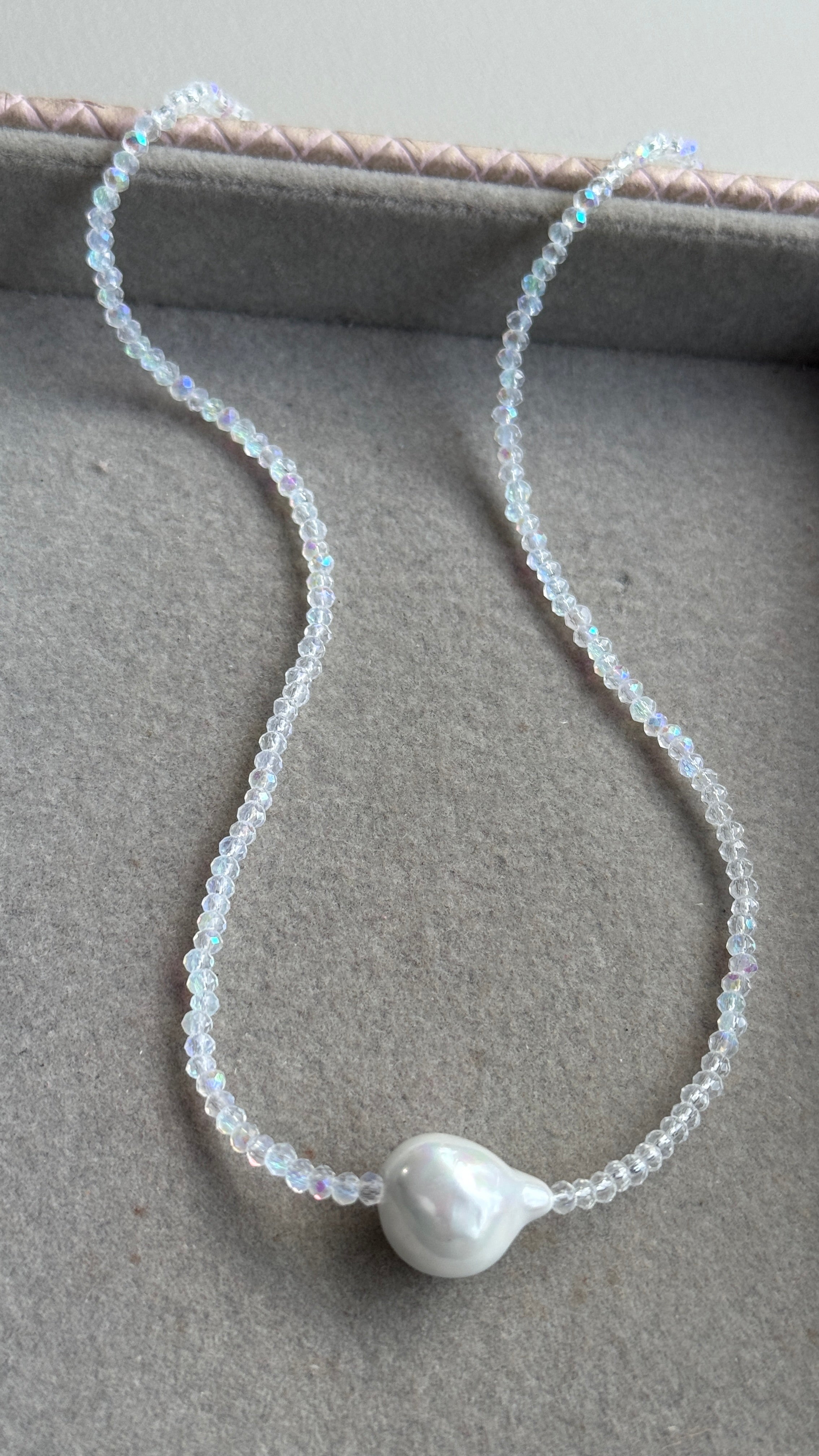 Colar cristal pérola Shell - Transparente boreal – Zayah Acessórios Finos