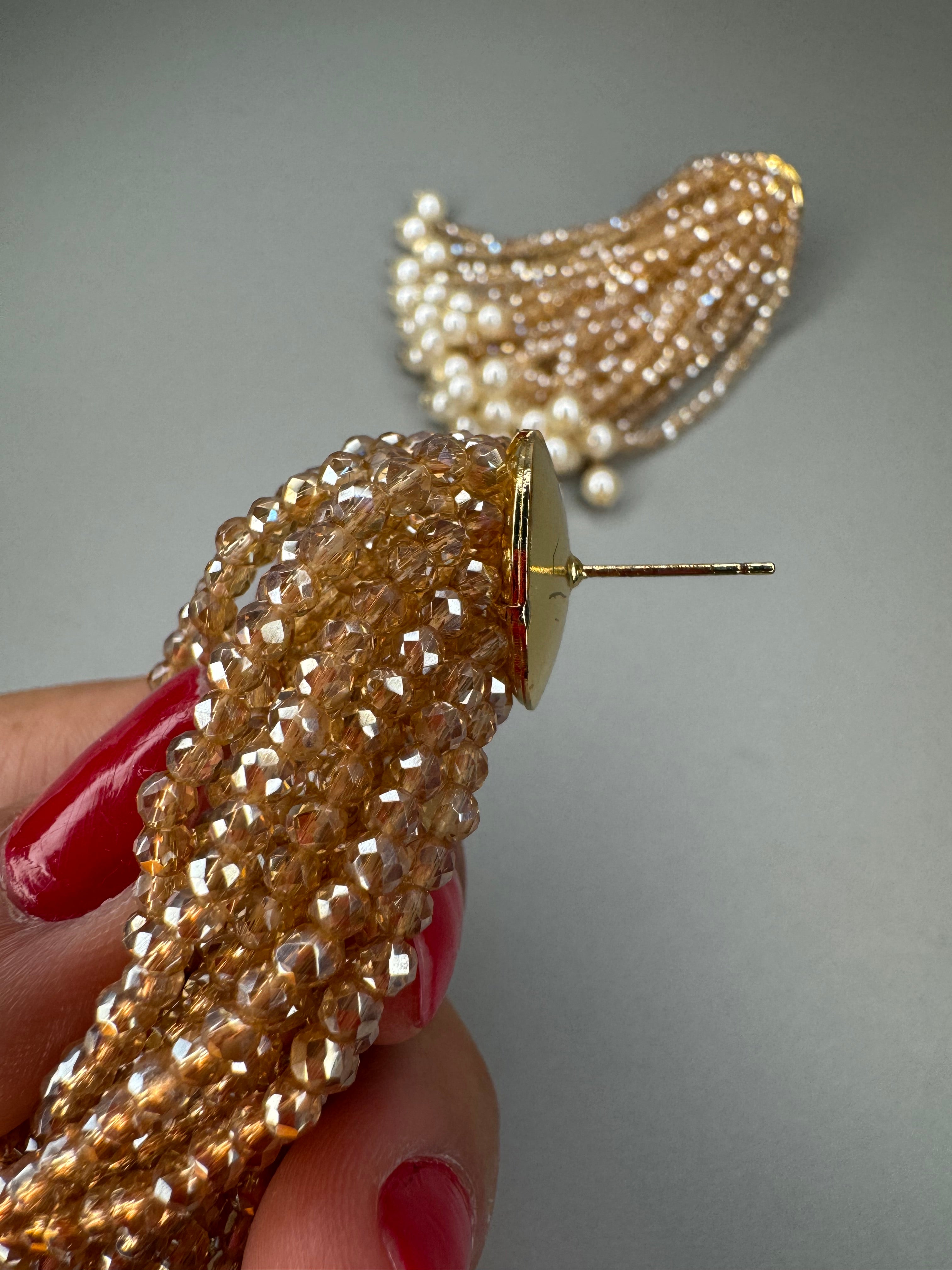 O Brinco Cascata Marília apresenta franjas de cristais em 30 fios, proporcionando um efeito volumoso e sofisticado. As pontas de pérolas adicionam um toque de elegância, tornando-o ideal para eventos formais. Este design exclusivo maximiza a luminosidade, destacando-se pela sua beleza e requinte.